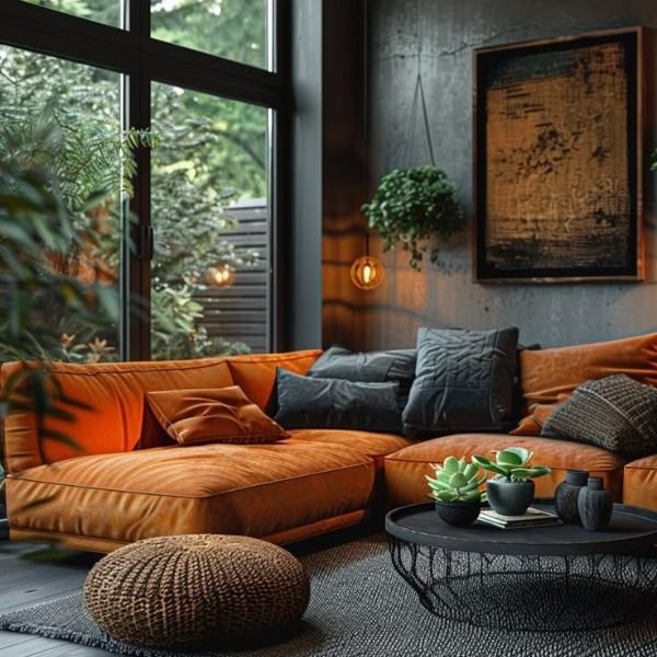 A room under renovation with construction materials scattered on the floor. There's a large window letting in sunlight and providing a view of a lush garden outside. Various tools and boxes are on a workbench, and insulation material is piled on the left.