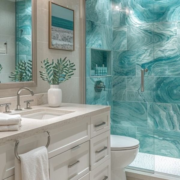 A construction or renovation site is visible, featuring metal scaffolding on a tiled floor. In the background, there's an open window allowing natural light to brighten the area. Cardboard boxes are placed on a surface, hinting at ongoing work. Electrical cables are scattered on the floor, and a cutout in the wall appears to be an unfinished part of the project.